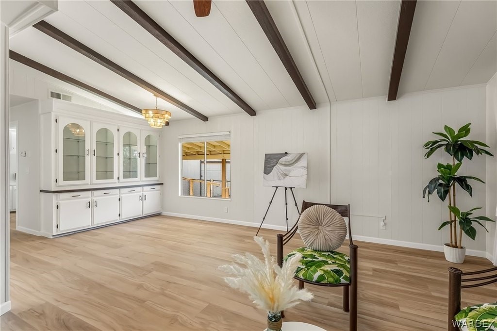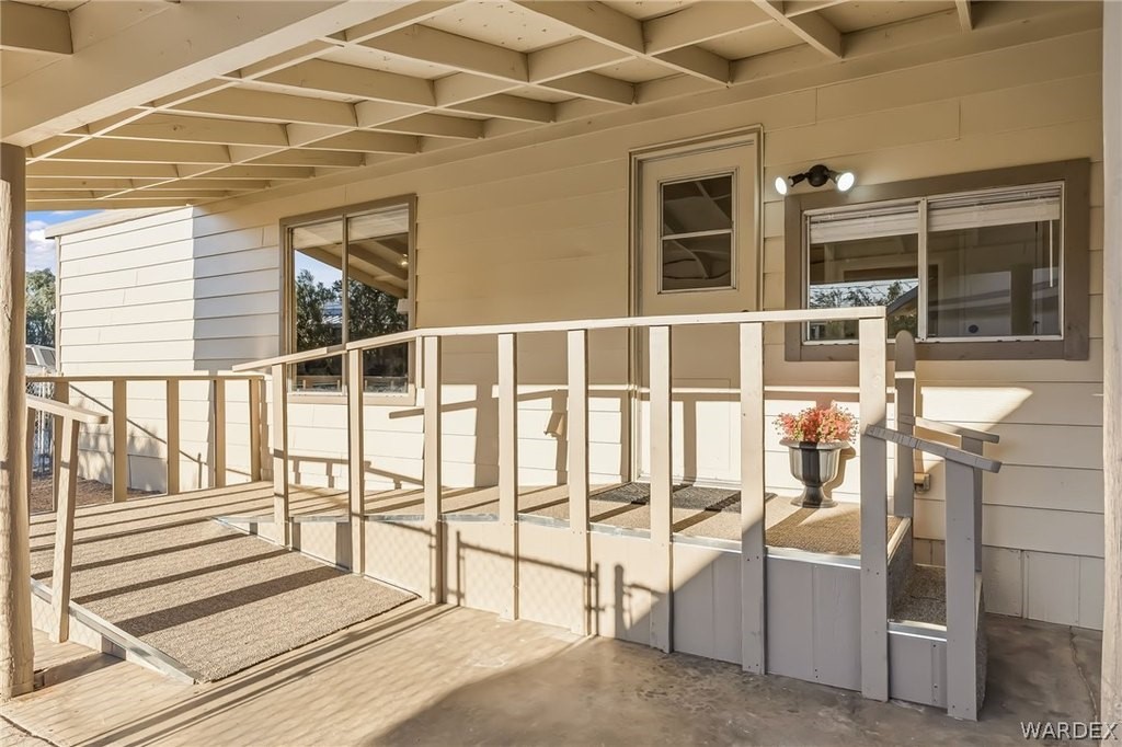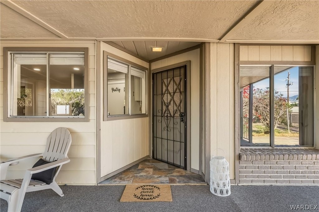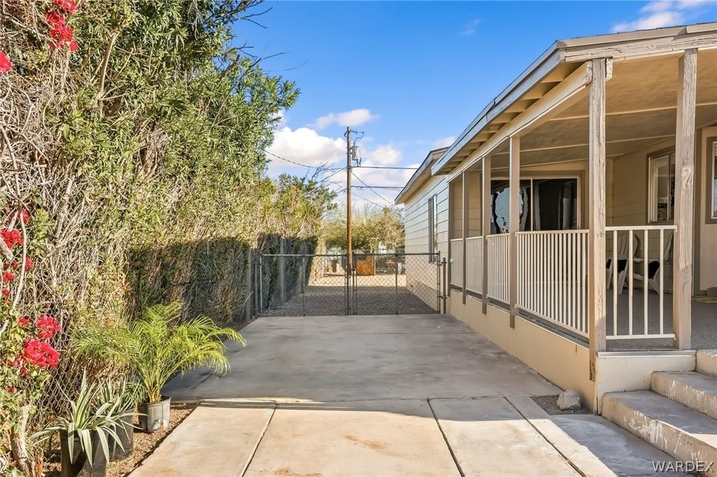 Newly REMODELED 3-bedroom home with versatile space and exceptional parking!! Step inside to a bright, open living area featuring vaulted ceilings with exposed beams, stylish flooring, built-in hutch cabinet and large windows that fill the home with natural light. The updated kitchen offers modern cabinetry, sleek countertops, tile backsplash, and plenty of prep space, surrounded by bay windows that create a light and airy feel. One of the standout features is the spare bedroom with its own private entrance, offering great flexibility for guests, home office, hobby room, or potential rental setup! The spacious master bedroom features a massive walk in closet and well appointed master bathroom with new custom walk-in shower and wrap around counter top and mirrors. The property also includes a 20x20 garage perfect for extra storage or vehicles. Outside, you'll appreciate the ample parking on both sides of the home, room for multiple vehicles, boats, trailers, or toys! The spacious yard offers plenty of potential for outdoor living. With recent remodeling, flexible living options, and rare parking space, this move-in-ready property offers both comfort and convenience! Located close to shopping, restaurants and the Colorado River!