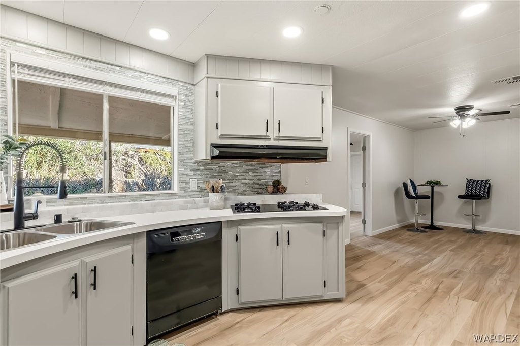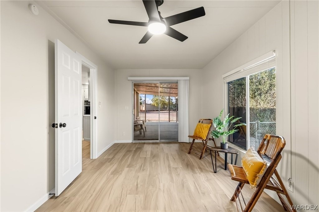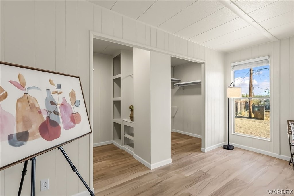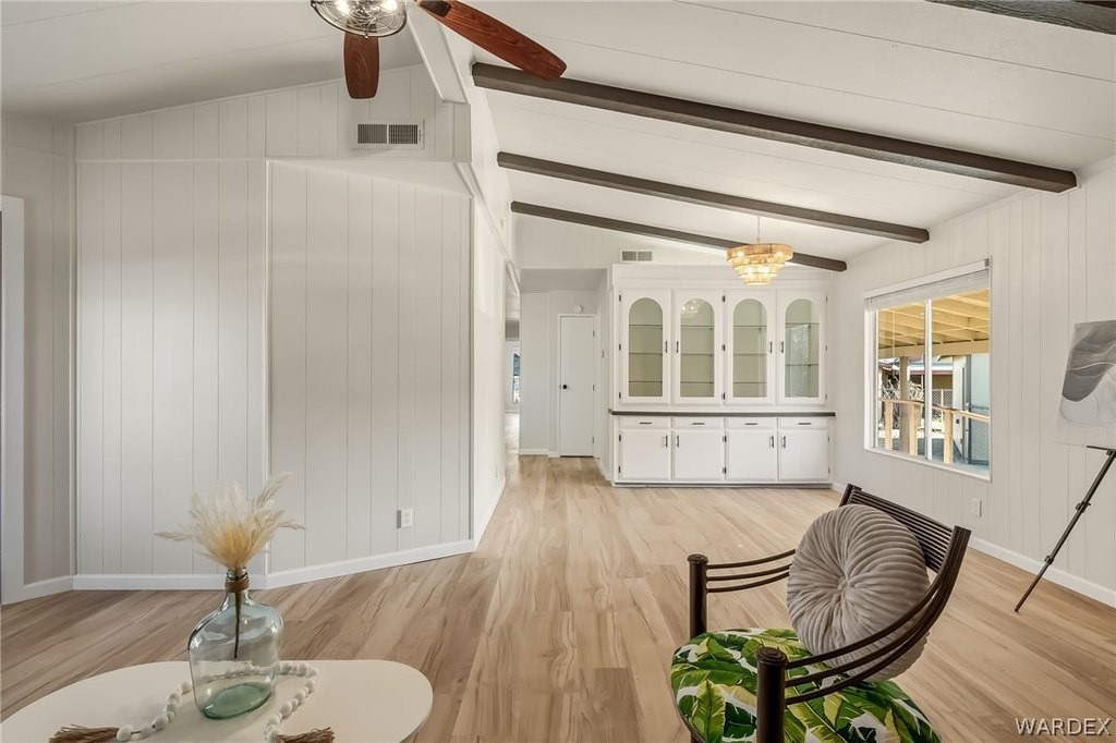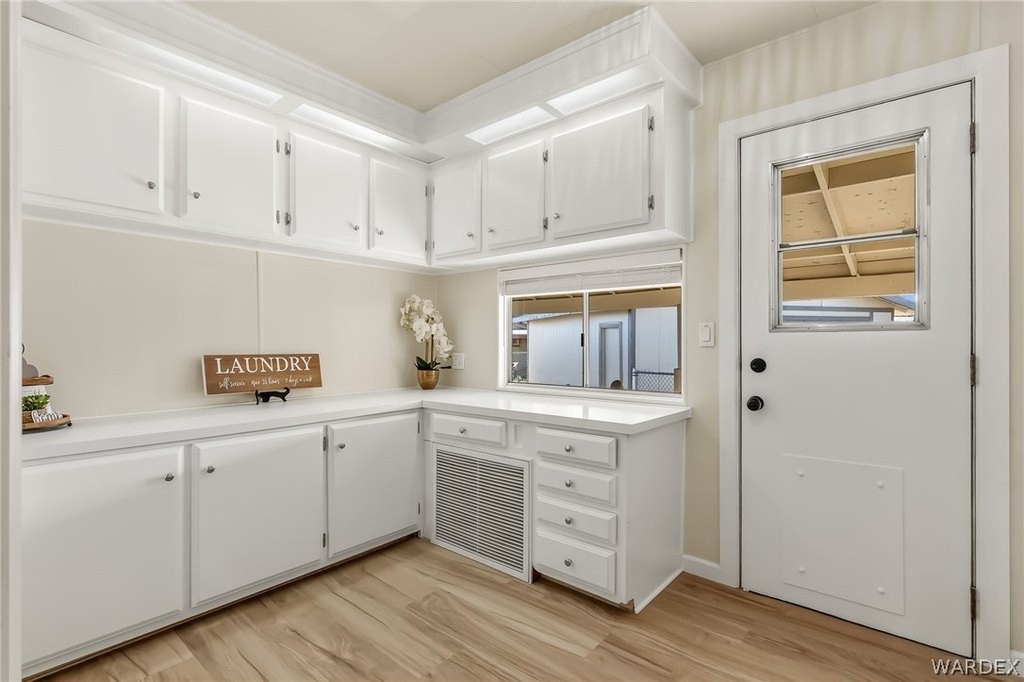 Newly REMODELED 3-bedroom home with versatile space and exceptional parking!! Step inside to a bright, open living area featuring vaulted ceilings with exposed beams, stylish flooring, built-in hutch cabinet and large windows that fill the home with natural light. The updated kitchen offers modern cabinetry, sleek countertops, tile backsplash, and plenty of prep space, surrounded by bay windows that create a light and airy feel. One of the standout features is the spare bedroom with its own private entrance, offering great flexibility for guests, home office, hobby room, or potential rental setup! The spacious master bedroom features a massive walk in closet and well appointed master bathroom with new custom walk-in shower and wrap around counter top and mirrors. The property also includes a 20x20 garage perfect for extra storage or vehicles. Outside, you'll appreciate the ample parking on both sides of the home, room for multiple vehicles, boats, trailers, or toys! The spacious yard offers plenty of potential for outdoor living. With recent remodeling, flexible living options, and rare parking space, this move-in-ready property offers both comfort and convenience! Located close to shopping, restaurants and the Colorado River!